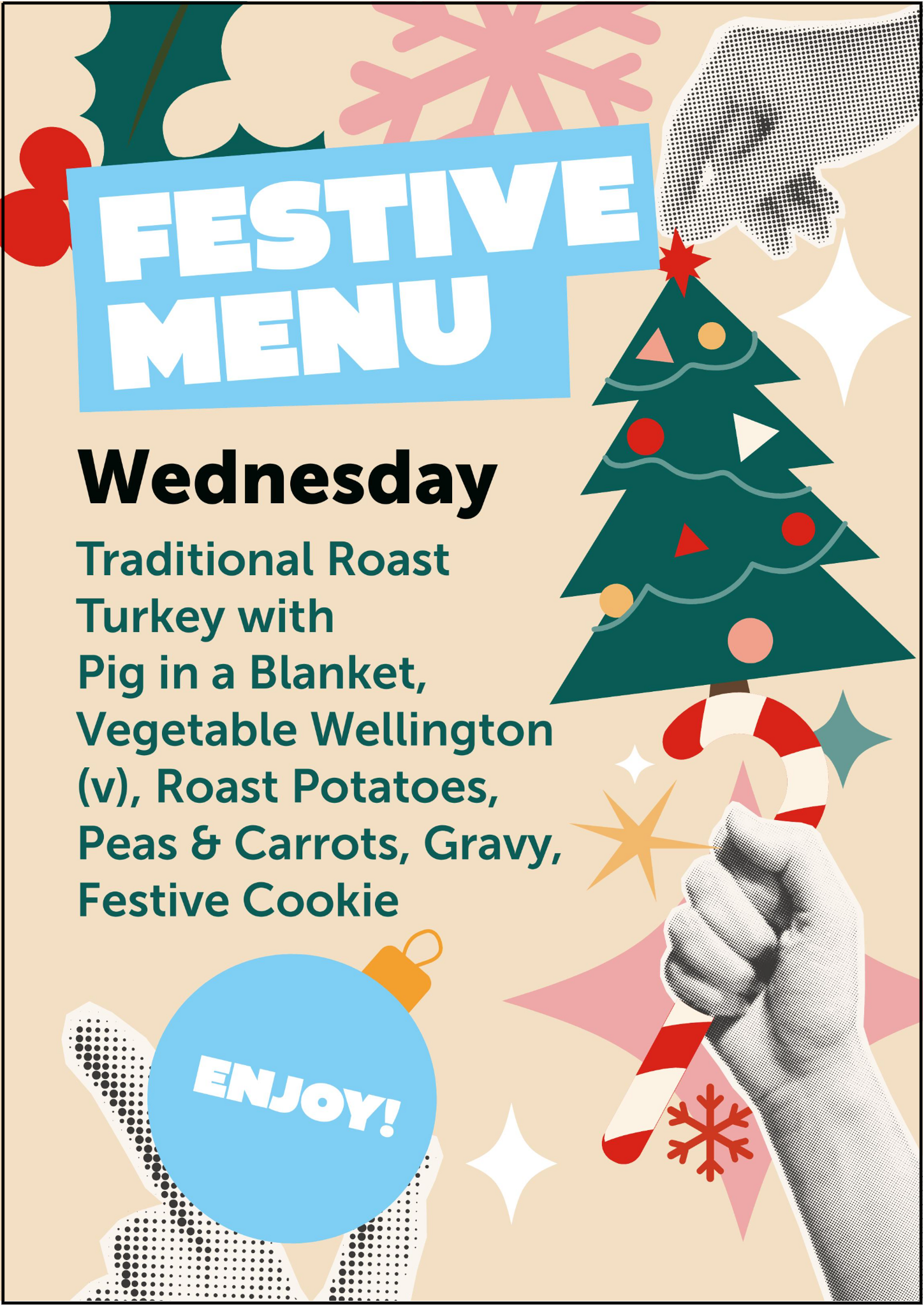 We are pleased to announce that there will be Christmas Lunch served on Wednesday 17th December. Please see the menu below. Halal turkey will be available.